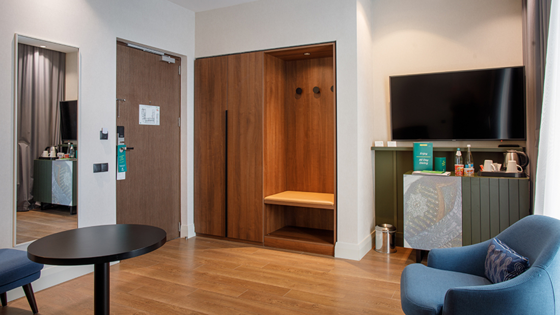 საერთაშორისო ბრენდის „Holiday Inn”ის სასტუმრო თელავში, ქალაქის ისტორიულ ნაწილში მდებაროებს. სასტუმრო მოიცავს 85 ნომერს. კომპანია “რენოვო”-ს მიერ შესრულებულია სასტუმროს ნომრების ავეჯის მიწოდება-მონტაჟი.