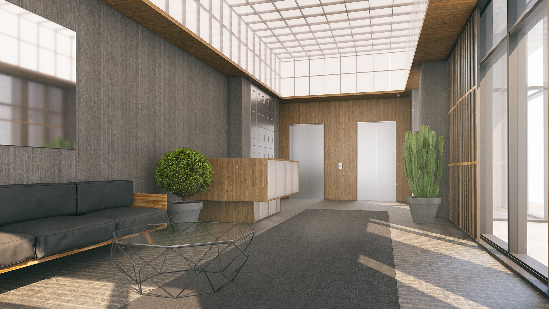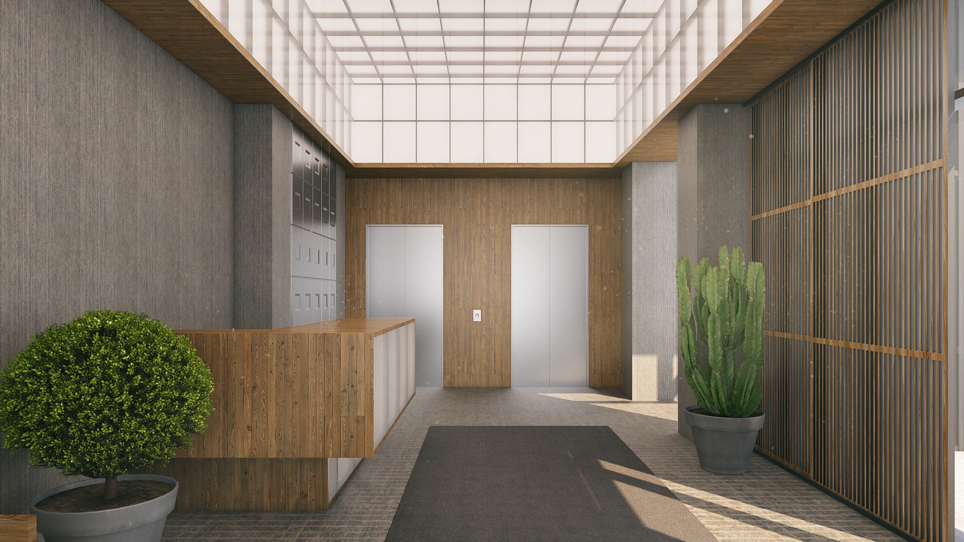 დერეფნის და ლობის სივრცეებს;