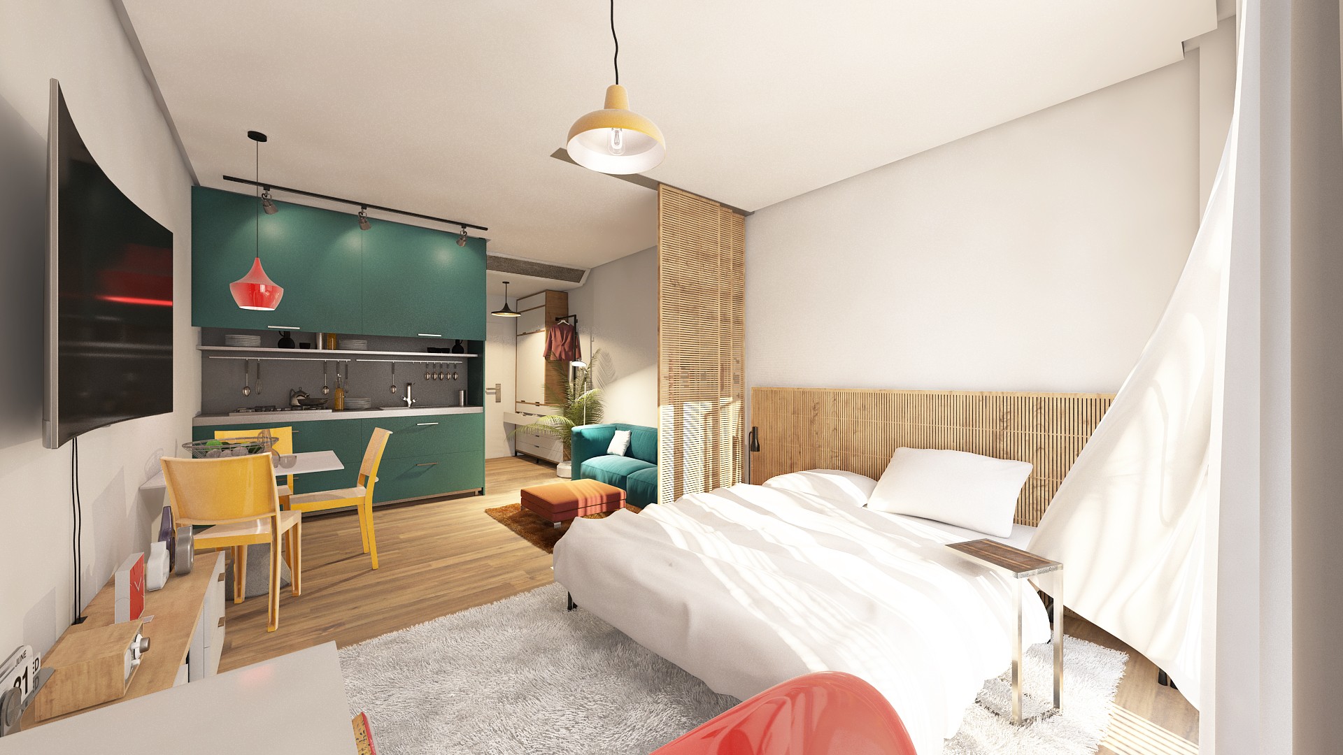 სამზარეულო და სასადილო სივრცეებს;