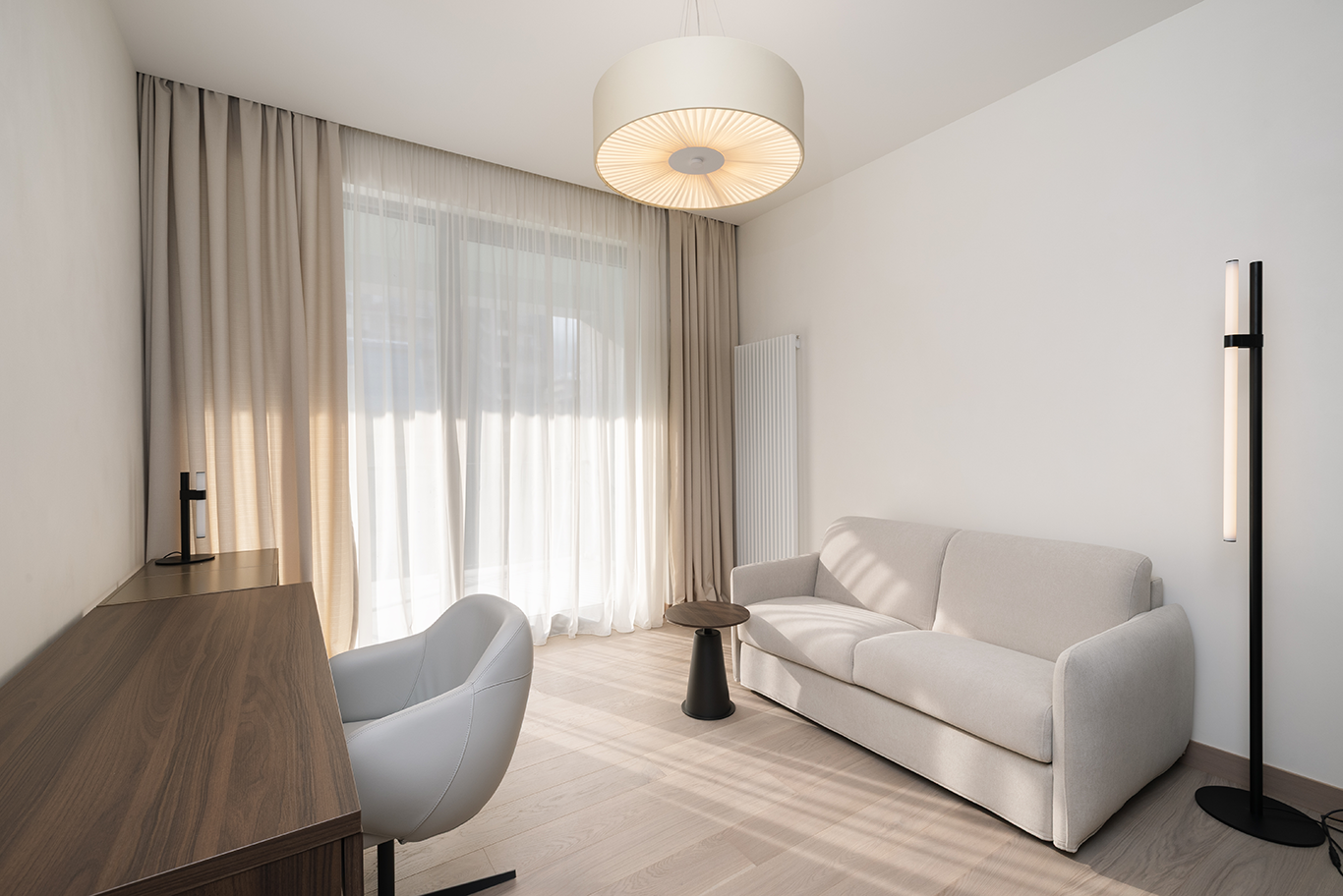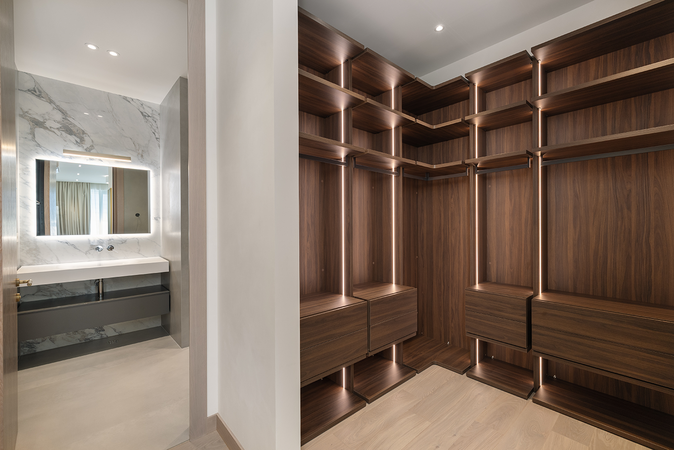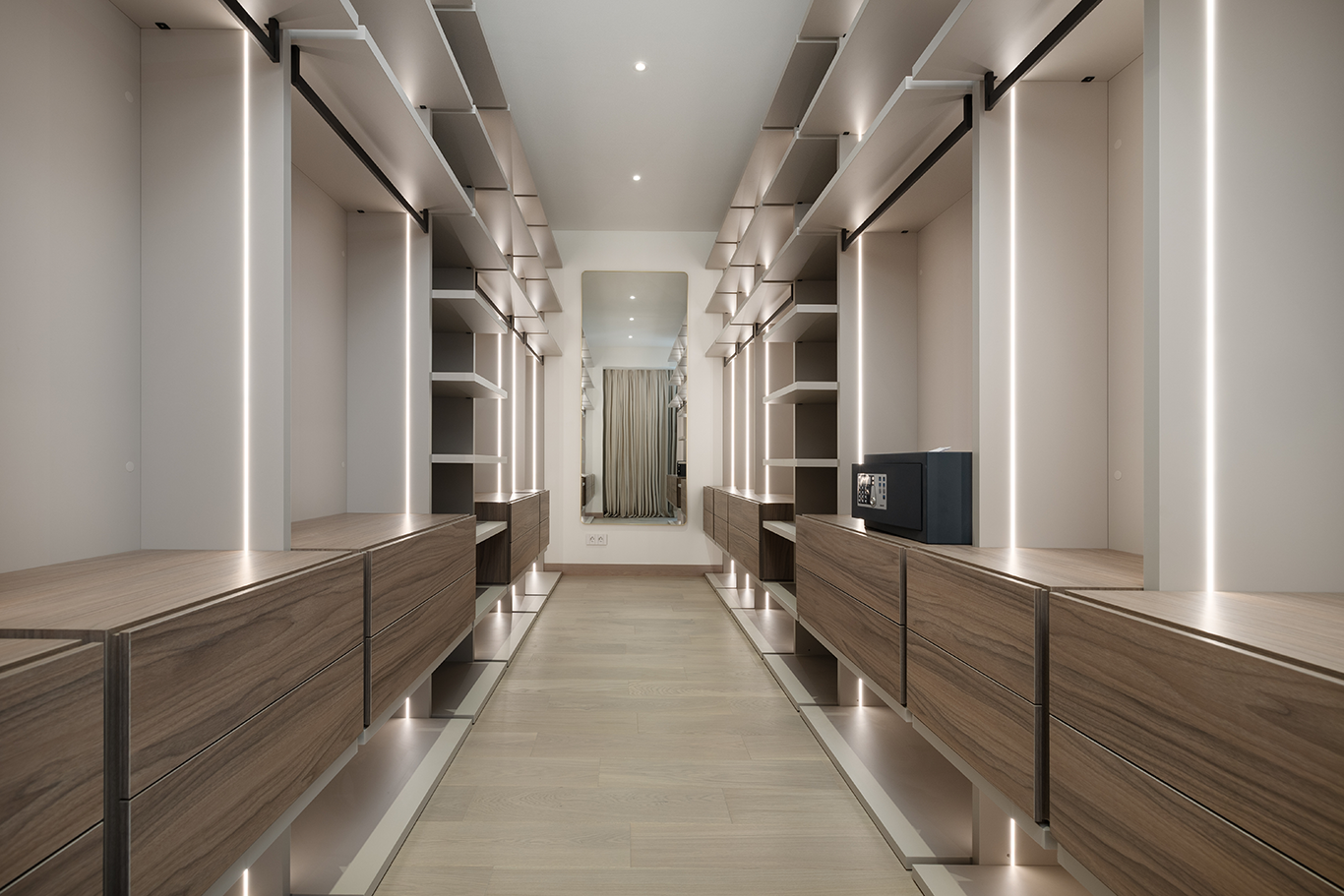 The interior combines premium Italian furniture and lighting with high-quality finishing materials.